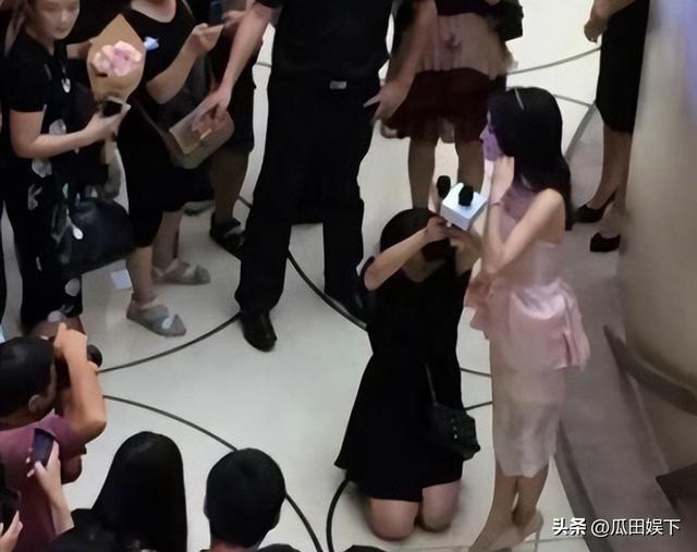 当时一名女工作人员跪在地上帮她举着,足足坚持了十几分钟。